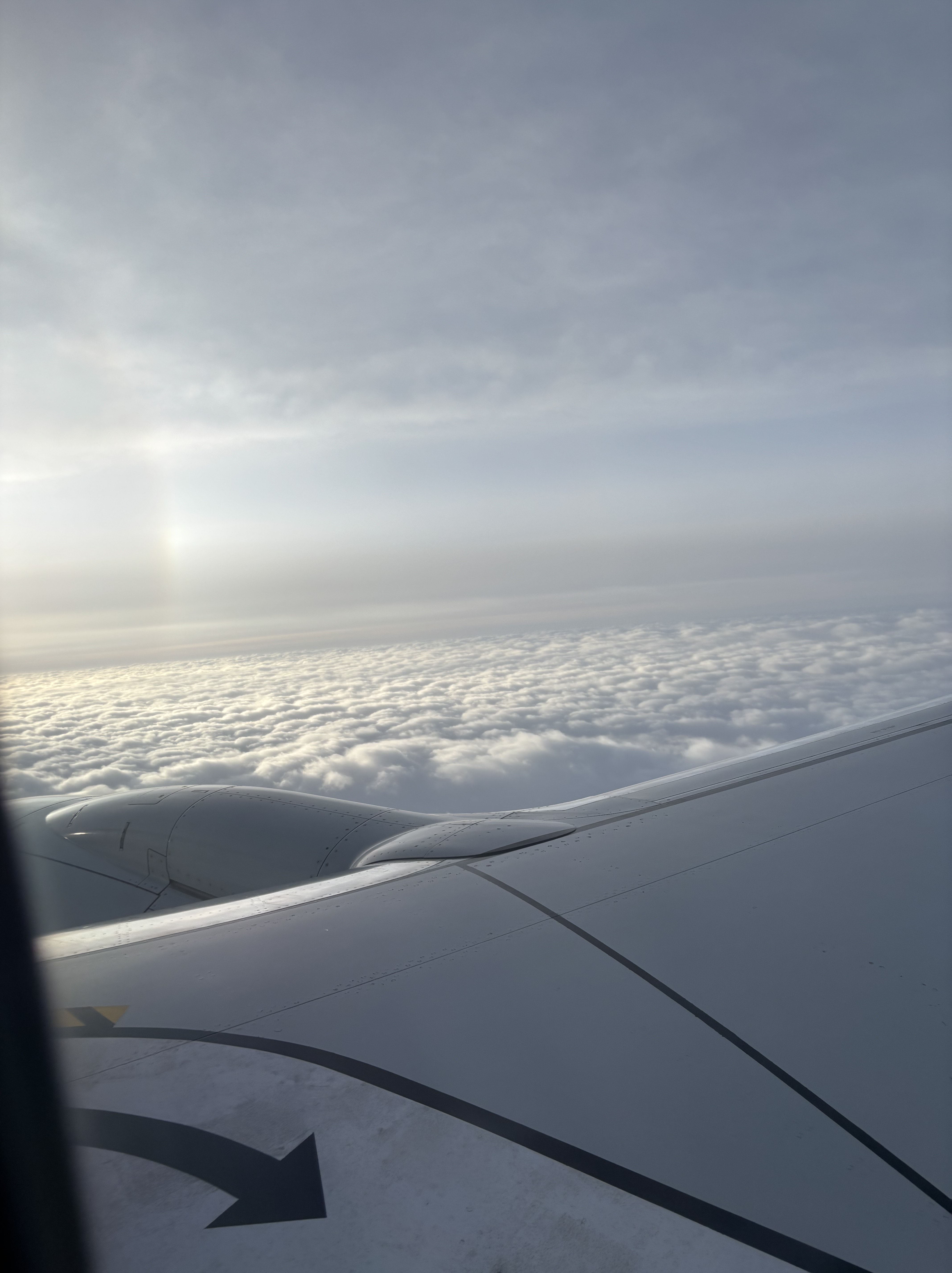A delay, as they de-iced the plane, made my heart jump into my throat… because what if they realized they couldn’t keep it de-iced? It was awfully, awfully cold out there. Several degrees below freezing. And so I sat there anxiously as they moved the de-icer around, under, and over the plane, filming out my window when it finally got to my side, not really breathing, fully, until the pilot taxied away from the gate and began its journey down the runway.